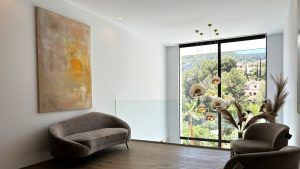 Featuring 4 bedrooms and 5 bathrooms, this home includes thoughtful details such as a sauna and a wine cellar. A covered terrace connects directly to the backyard, leading to a large terrace with a stunning 23-meter pool, perfect for relaxing and entertaining.